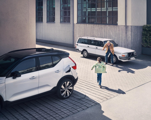 2021 – Volvo XC40 Recharge with Volvo 240 Estate and Rolf Lassgård somewhere in Stockholm, but where?
