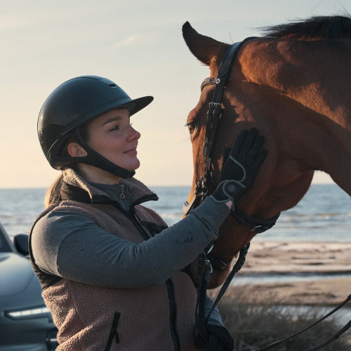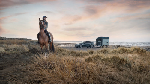 2026 – Volvo EX60 with horse at coast, maybe Swedish or Danish coast?